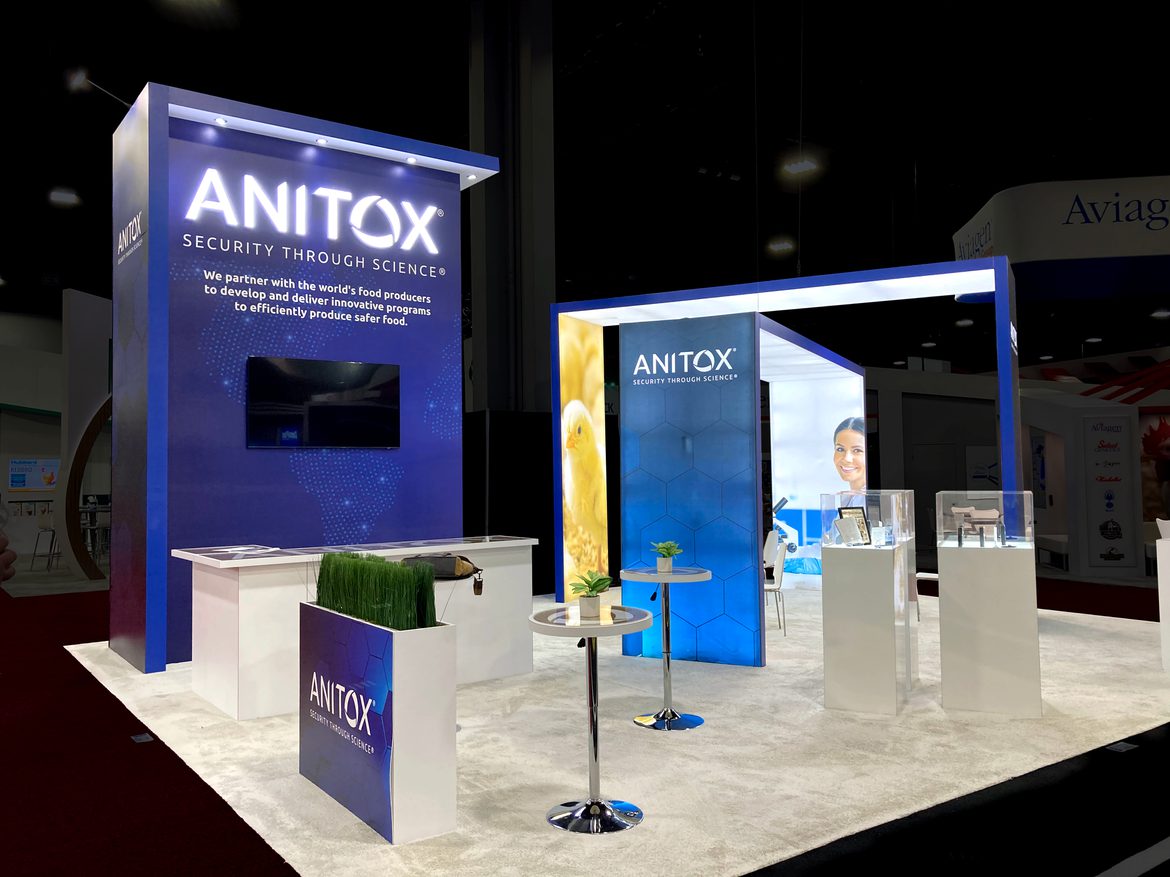 Anitox is a company dedicated to partnering with food producers worldwide to develop and deliver innovative programs for efficient and safer food production. Anitox's booth was designed to communicate Anitox's core message of "Security Through Science".
