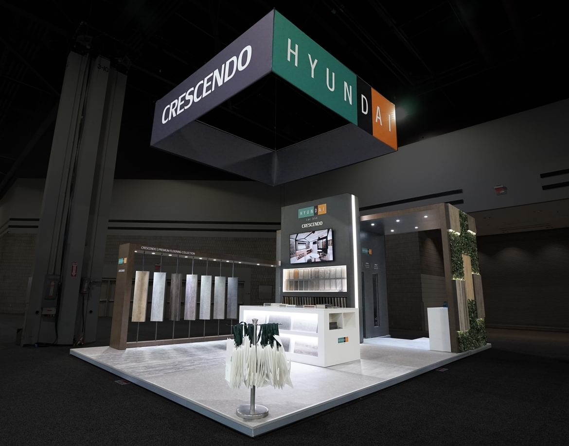 Hyundai L&C approached us ahead of the leading trade fair for carpets and floor coverings with one request: to create a booth that would simultaneously show off their various flooring products and underscore their commitment to a cleaner environment. The result? A 20' x 30' booth that was awarded Best Design at DOMOTEX 2019.