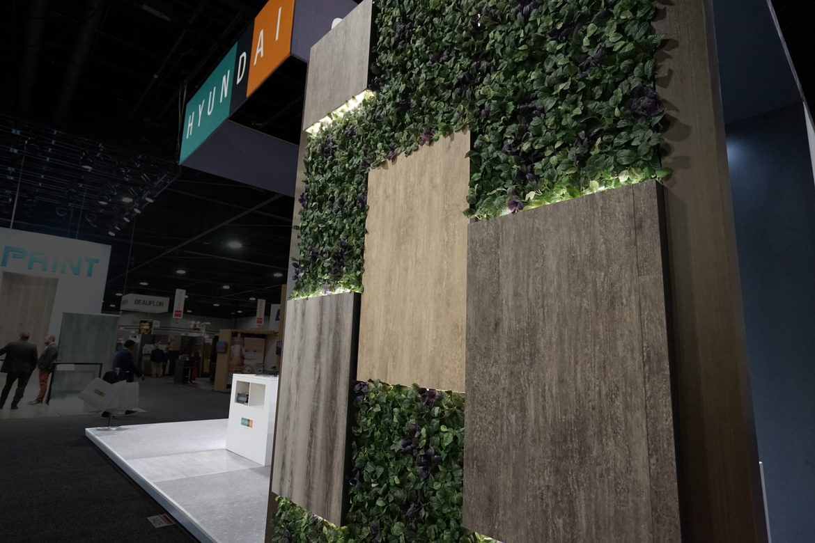 We mounted samples of Hyundai L&C’s exquisite flooring products to an earthy, ivy-covered exterior wall. This unique display enticed visitors to explore their flooring options and inquire about the company’s dedication to preserving the environment.