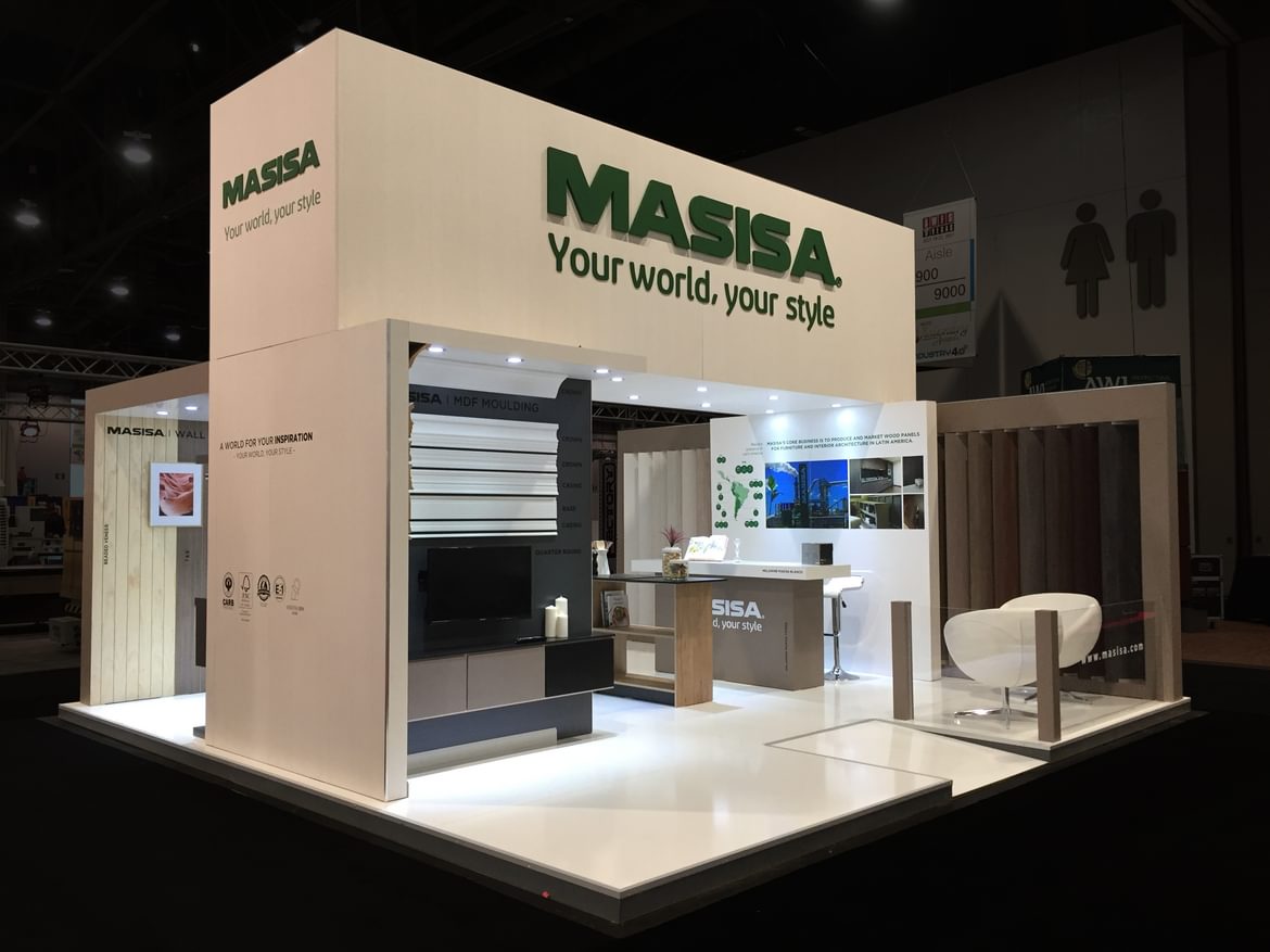 Masisa, an international wood products company, approached us with a unique request: to construct a booth entirely out of their own products. We answered the call, building this exhibit from top to bottom using only Masisa materials.