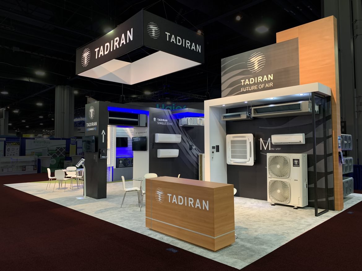 A flat-screen TV captured attention with engaging video and eye-catching visuals. A branded wall mounted with best-in-class air conditioning products showed off Tadiran's smart technology and innovative designs.